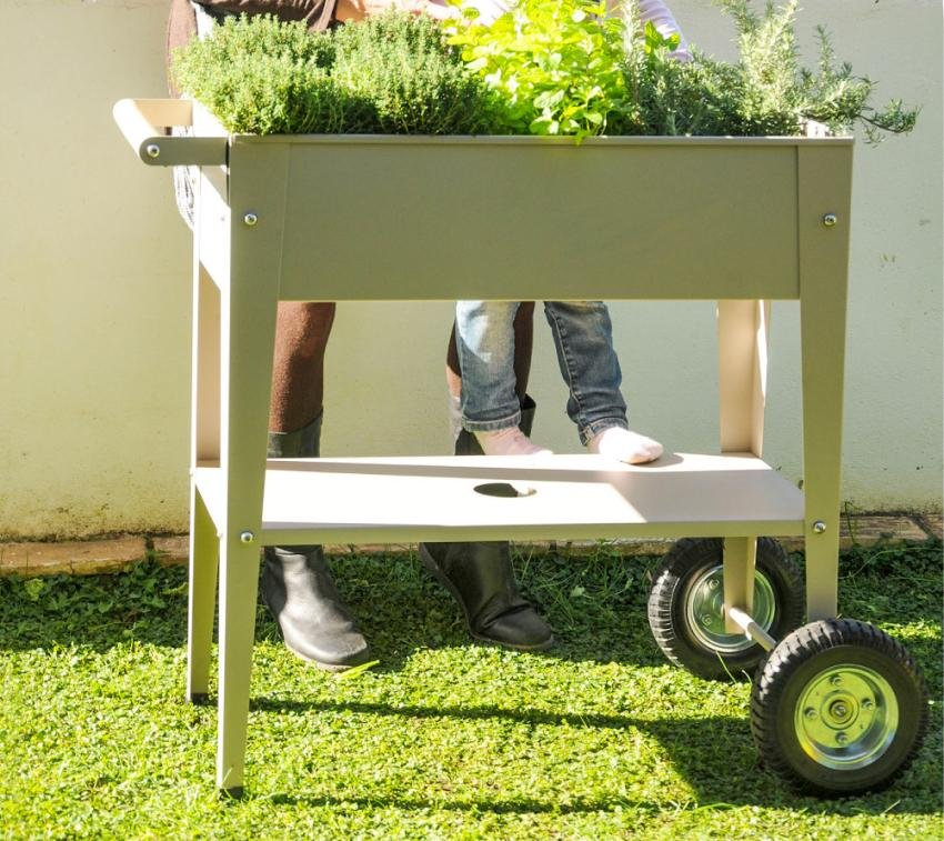 Tvarovo vyvýšený záhon je vybavená praktickými pneumatikami a šikovnou rukoväťou, vďaka čomu ju ľahko premiestnite na terasu, balkón alebo do záhrady. Ďalším plusovým bodom je materiál: korpus je vyrobený z práškovo lakovanej ocele, čo znamená, že vyvýšená posteľ je odolná voči hrdzi a je použiteľná za každého počasia. Gumové tesnenie integrované v spodnej časti odvádza prebytočnú vodu, takže sa vyhnete podmáčaniu a zabezpečíte optimálny prísun vody pre rastliny. Príjemná výška umožňuje záhradkársky komfort šetrný k chrbtu a prispieva k lepšiemu prehrievaniu zeme, čo má pozitívny vplyv na rast rastlín.