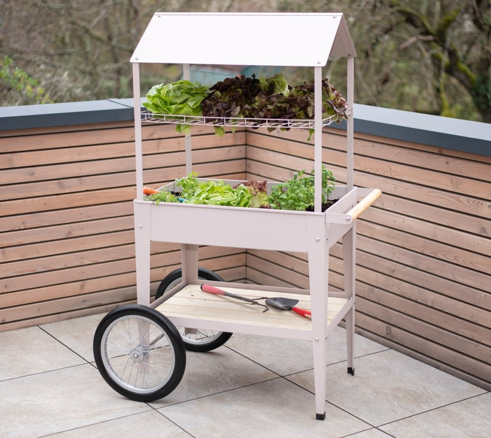 : HersteraModerný dizajn, maximálny úžitok - mobilná vyvýšená posteľ Herstera Garden Expert je zakončená strieškou a boduje mnohými skvelými doplnkami!