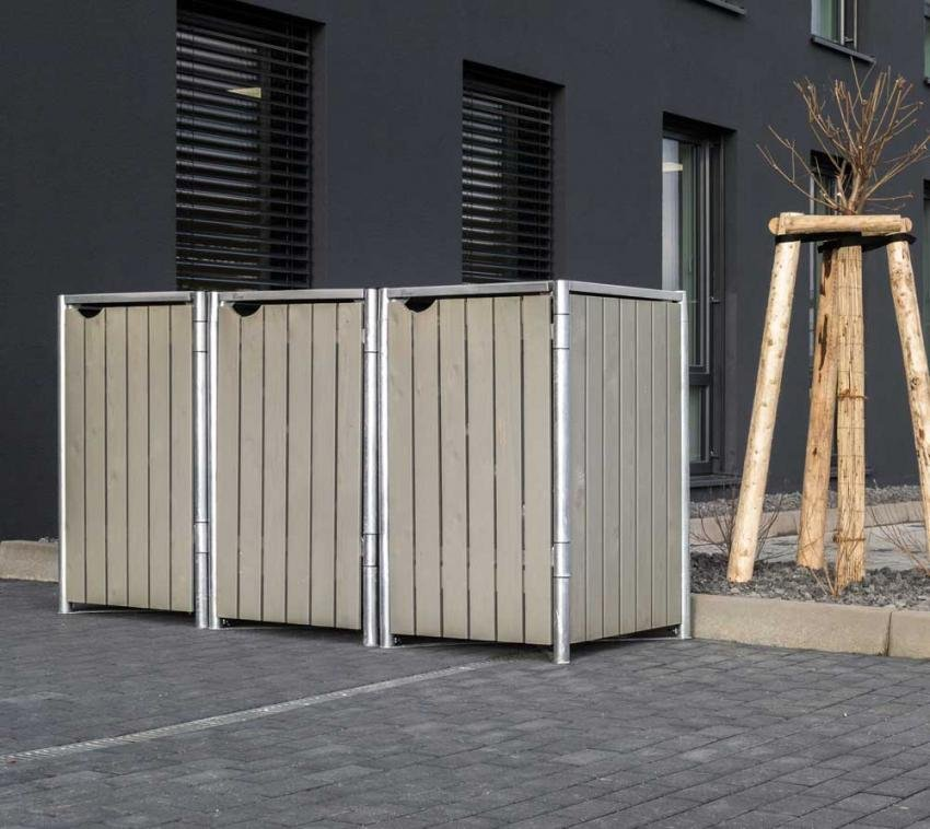 Hide box na odpadky - 3 koše (240l), sivá farba 80x278x115 cm