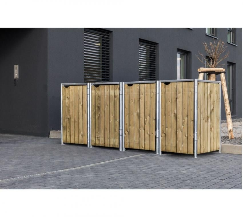 Hide box na odpadky - 4 koše (140l), prírodné drevo 63x241x115 cm