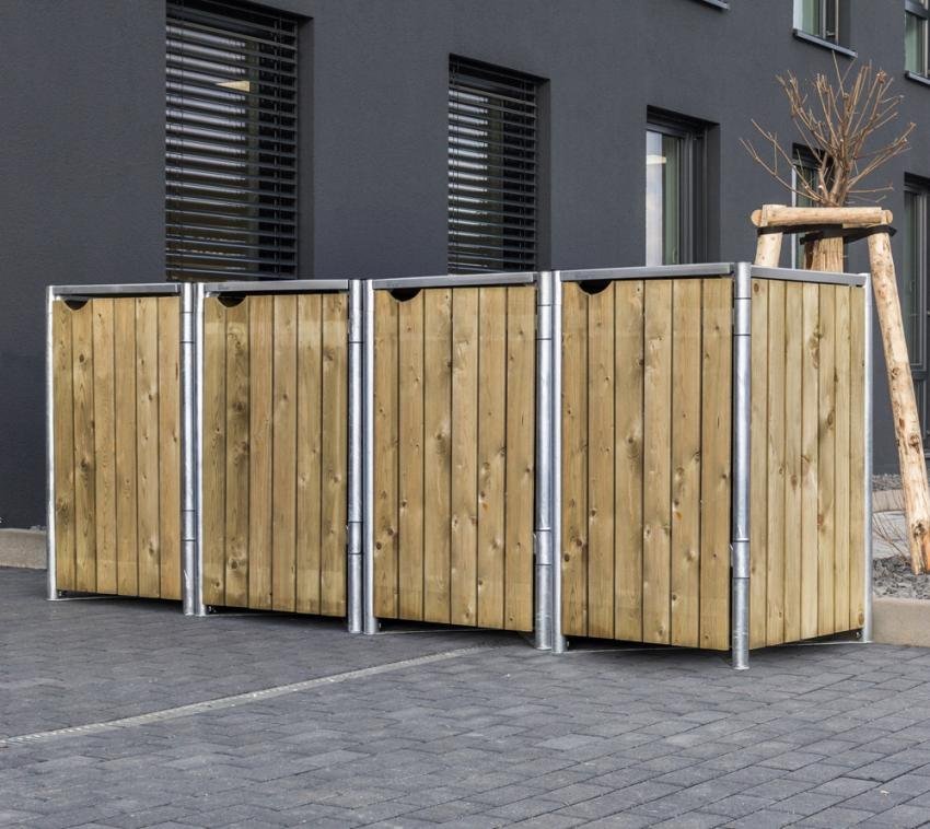 Hide box na odpadky - 4 koše (240l), prírodné drevo 80x278x115 cm