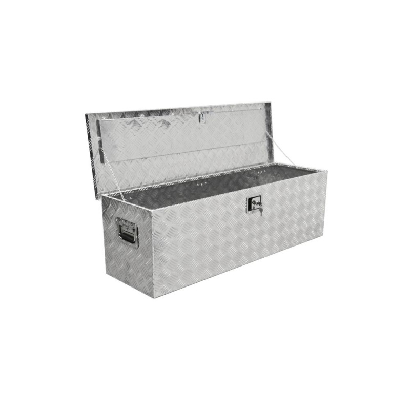 Hliníková prepravná bedňa GT 165 strednej veľkosti prepravných boxov od výrobcu GÜDE. Veľmi robustný, pevne skonštruovaný celokovový box s objemom 165 litrov. Je vyrobený z hliníkového rebrovaného plechu (plechu s oválnymi výstupkami) a má všestranné použitie, či už v dielni, pivnici, v prívese, na pick-upe alebo na plošine. Bedňa ponúka 165 litrov bezpečného úložného priestoru pre náklad, vybavenie, náradie alebo čokoľvek iné, čo chcete bezpečne uskladniť alebo prepraviť. Medzi špeciálne charakteristiky patria pohodlné pogumované rukoväte s pružinou a pevný zámok pre bezpečné uloženie obsahu. Všestranne použiteľný celokovový box vyrobený z hliníkového rebrovaného plechu (plechu s oválnymi výstupkami) pre bezpečné uloženie a prepravu náradia, vybavenia a podobných predmetov.
