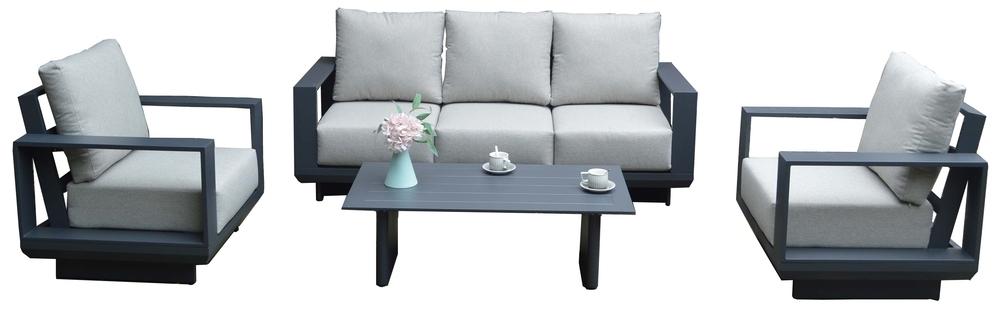 : RojaplastLuxusná hliníková súprava v grafitovom vyhotovení. Moderná súprava, ktorá sa dokonale hodí do každého exteriéru alebo interiéru.