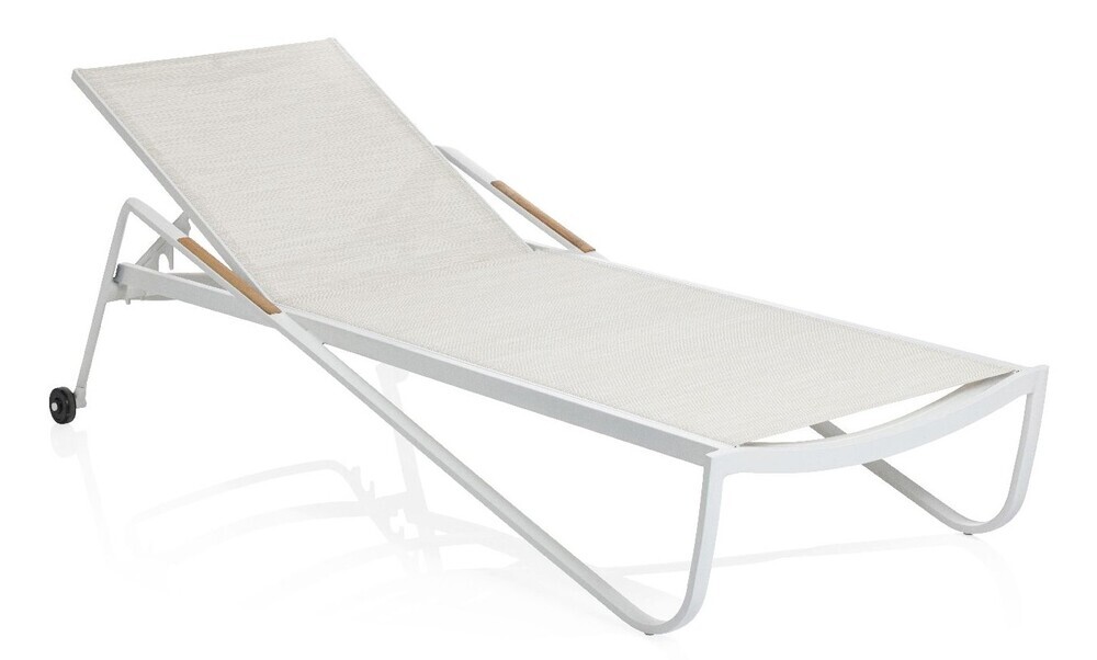 Hliníkové ležadlo KETTLER DIAMOND s podrúčkami z teakového dreva - biele / krémové