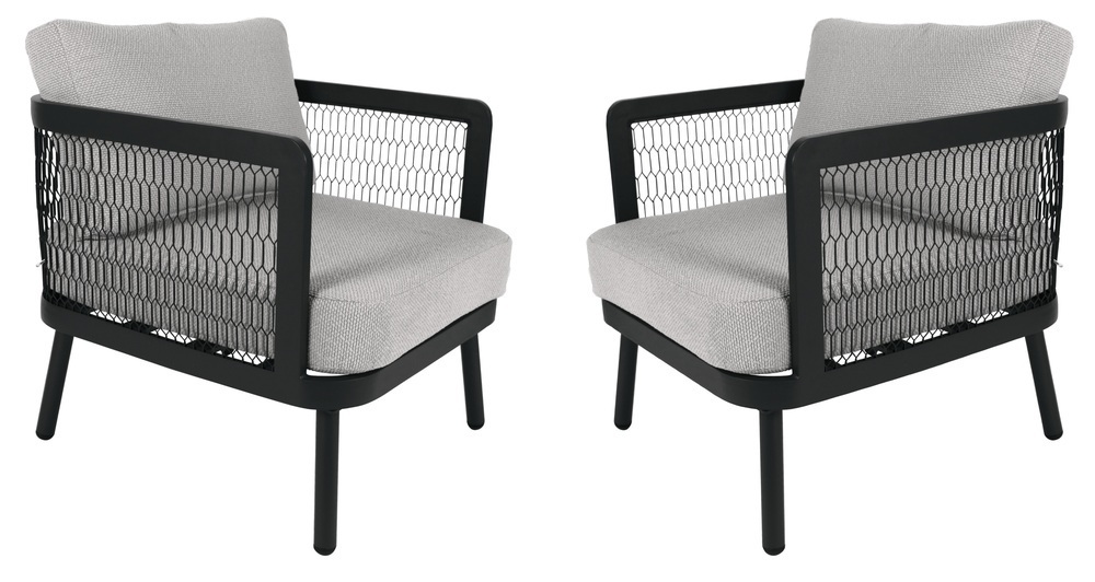 : RojaplastLuxusné hliníkové kreslá v čiernom vyhotovení, ktoré dokonale zapadnú do každého exteriéru alebo interiéru. Veľmi pohodlné vankúše zo spriadanej tkaniny (polyester 460 g/m2, vodoodpudivá tkanina) s penovou výplňou (12 cm) sú odolné voči UV žiareniu.