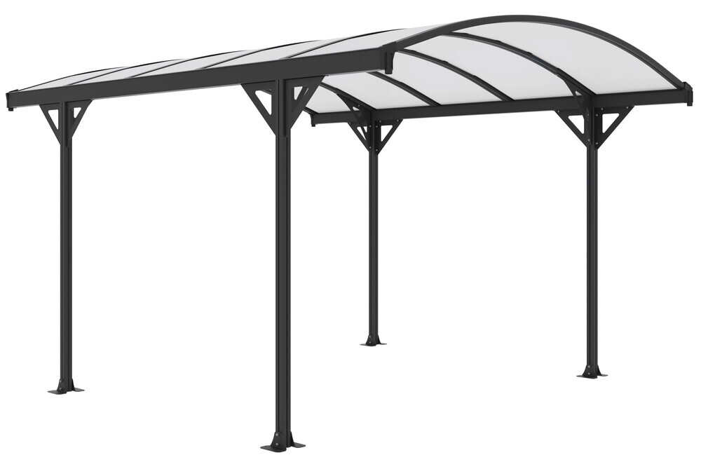 : RojaplastHliníkový, voľne stojaci prístrešok na auto ALLEN s rozmermi 366x302 cm je ideálnym spôsobom, ako zakryť parkovacie miesto. Prístrešok na auto ponúka dokonalú ochranu vášho auta alebo vonkajšieho priestoru vďaka pevnej a odolnej konštrukcii.