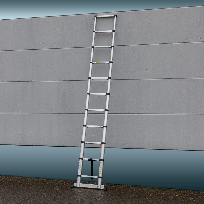 : DEMAHliníkový teleskopický rebrík s 10 priečkami a s maximálnou výškou rozloženia 3,20 m, so zaisťovacími západkami pre bezpečné používanie. Bezpečná protišmyková platforma, bezpečnosť pri používaní zaisťuje aj mechanika so šetrnými zaisťovacími západkami pre dlhú životnosť.