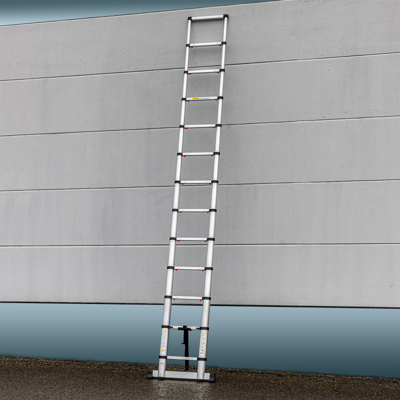 : DEMAHliníkový teleskopický rebrík s 13 priečkami a s maximálnou výškou rozloženia 3,80 m, so zaisťovacími západkami pre bezpečné používanie. Bezpečná protišmyková platforma, bezpečnosť pri používaní zaisťuje aj mechanika so šetrnými zaisťovacími západkami pre dlhú životnosť.