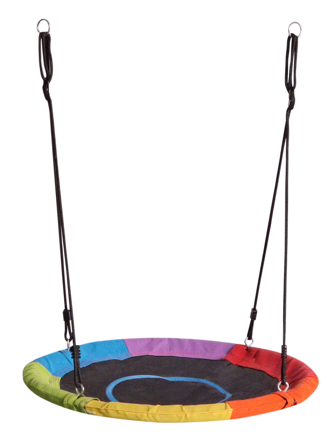 38.13 Hojdací kruh s priemerom 100 cm z pevného nylonu má nosnosť 50 kg. Súprava obsahuje kruh na hojdanie a pevné laná pre bezpečné zavesenie.