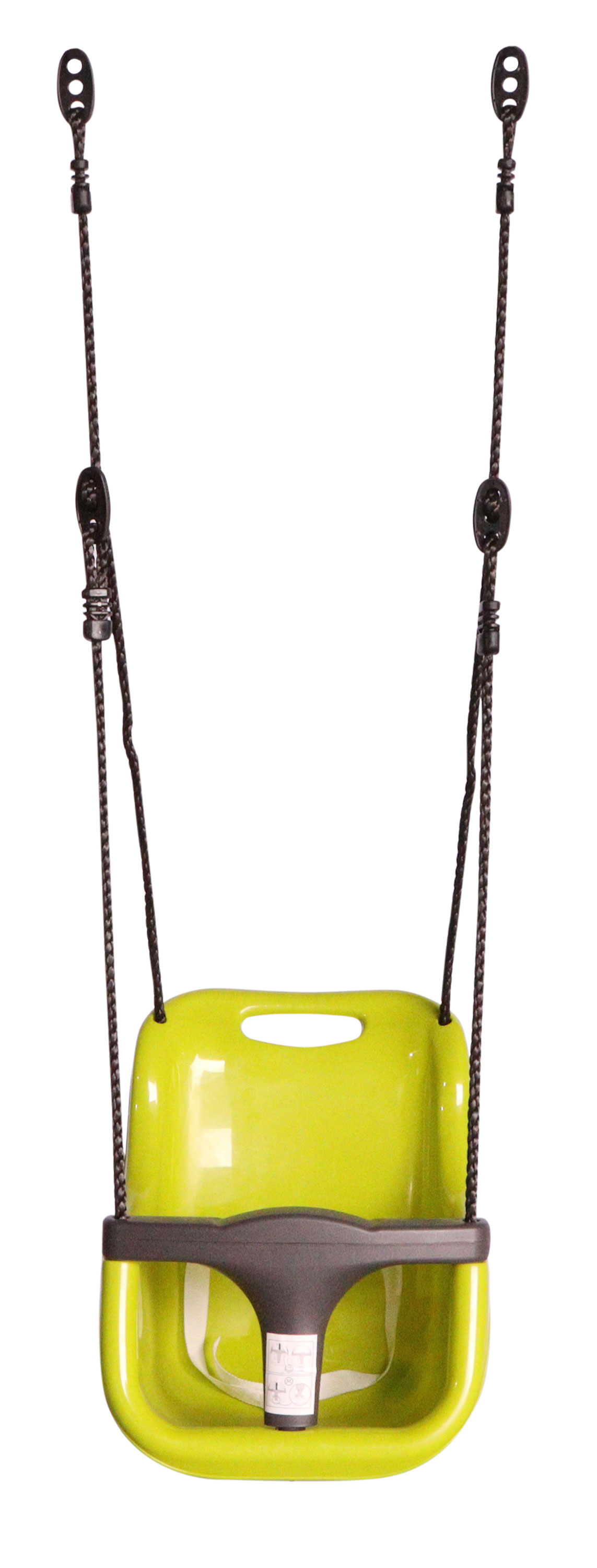 Bezúdržbová hojdačka s operadlom a bezpečnostnou zábranou pre deti do troch rokov. Súprava obsahuje sedačku a pevné laná pre bezpečné zavesenie.