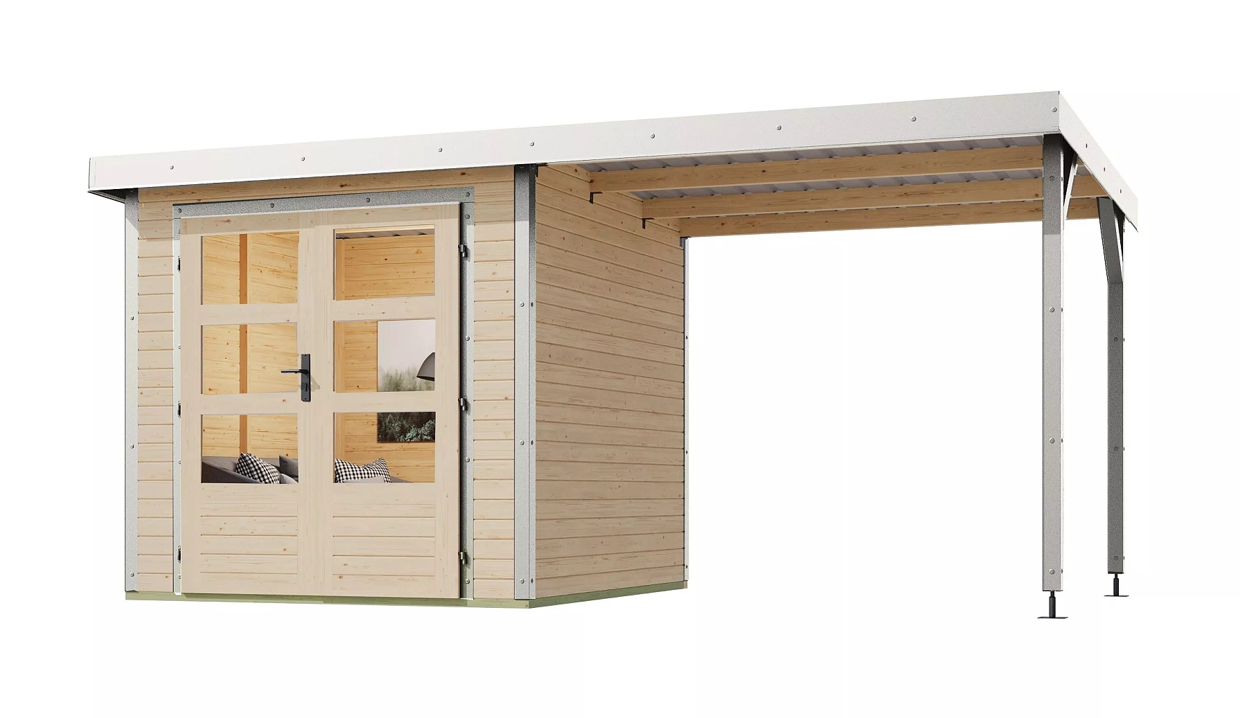 Hybridný domček KARIBU JUPITER A (93422) natur / biely LG4032