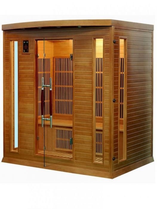 Infrasauna pre 4 osoby vyrobená z tmavého kanadského jedľovca.