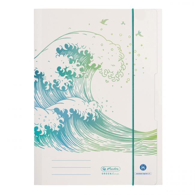 : HERLITZTrojchlopňový obal A4 z recyklovanej lepenky so zatváraním na gumičku dizajnovej rady GREENline. Motív Vlna.