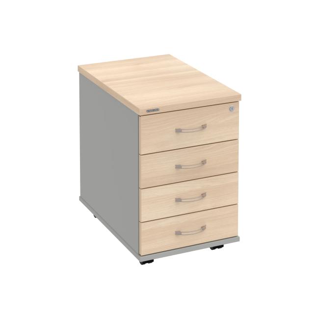 Kontajnery - všetko uložené a vždy poruke. Kontajnery sa väčšinou umiestňujú pod stoly. Mobilné modely sú vybavené kolieskami, je možné ich premiestniť podľa potreby. Základným materiálom korpusov je kvalitná laminovaná drevotriesková doska hrúbky 18 mm. Pre dlhšiu životnosť je na horný diel korpusu použitá doska, ktorej hrúbka je 25 mm. Korpusy a čelá zásuviek sú chránené proti poškodeniu hranou ABS 2 mm. Kontajnery sú vybavené zámkom s centrálnym zamykaním. Vďaka integrovanému systému STOP-CONTROL s centrálnym zámkom u väčšiny kontajnerov sa nemusíte báť prevrhnutiu kontajnera alebo prípadného privretia ruky. Systém zaručí, že pri otvorení jednej zásuvky sa ostatné zásuvky automaticky zablokujú. Zásuvky sú z plastu, ktorý je ľahko umývateľný a vhodný pre jednoduchú údržbu. Praktickou súčasťou vrchnej zásuvky je prehľadný organizér a priestorové deliace priečky. Vaše ceruzky, sponky a ďalšie kancelárske potreby budú vždy na poriadku. Organizér a deliace priečky sú súčasťou každého kontajnera. Na kontajnery Hobis sa vzťahuje päťročná záruka.