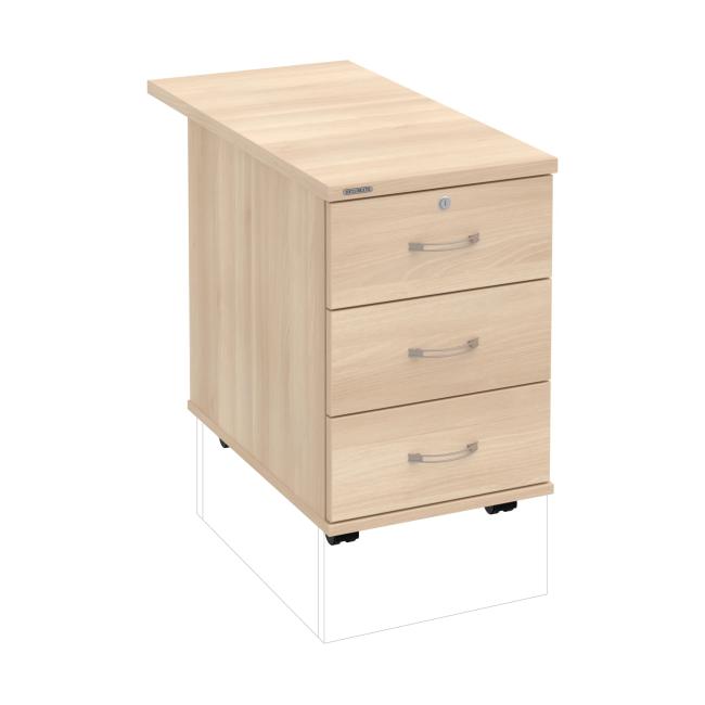 Kontajnery - všetko uložené a vždy poruke. Kontajnery sa väčšinou umiestňujú pod stoly. Mobilné modely sú vybavené kolieskami, je možné ich premiestniť podľa potreby. Základným materiálom korpusov je kvalitná laminovaná drevotriesková doska hrúbky 18 mm. Pre dlhšiu životnosť je na horný diel korpusu použitá doska, ktorej hrúbka je 25 mm. Korpusy a čelá zásuviek sú chránené proti poškodeniu hranou ABS 2 mm. Horná doska ma hĺbku 80. 3-zásuvkový kontajner má uzamykatelnú iba 1 zásuvku. Zásuvky sú z plastu, ktorý je ľahko umývateľný a vhodný pre jednoduchú údržbu. Praktickou súčasťou vrchnej zásuvky je prehľadný organizér a priestorové deliace priečky. Vaše ceruzky, sponky a ďalšie kancelárske potreby budú vždy na poriadku. Organizér a deliace priečky sú súčasťou každého kontajnera. Na kontajnery Hobis sa vzťahuje päťročná záruka.