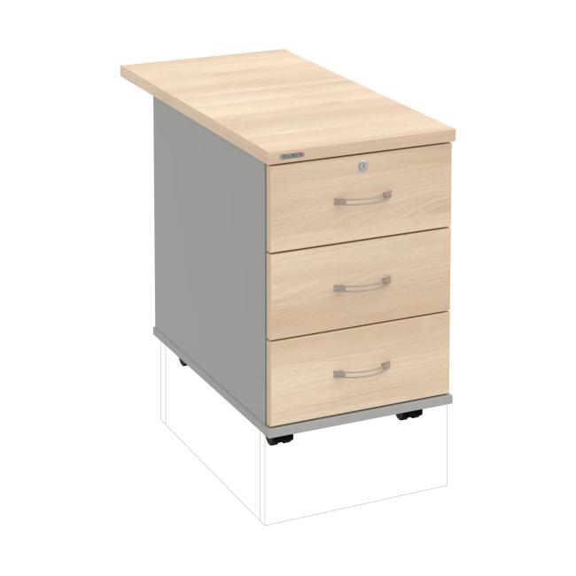 Kontajnery - všetko uložené a vždy poruke. Kontajnery sa väčšinou umiestňujú pod stoly. Mobilné modely sú vybavené kolieskami, je možné ich premiestniť podľa potreby. Základným materiálom korpusov je kvalitná laminovaná drevotriesková doska hrúbky 18 mm. Pre dlhšiu životnosť je na horný diel korpusu použitá doska, ktorej hrúbka je 25 mm. Korpusy a čelá zásuviek sú chránené proti poškodeniu hranou ABS 2 mm. Horná doska ma hĺbku 80. 3-zásuvkový kontajner má uzamykatelnú iba 1 zásuvku. Zásuvky sú z plastu, ktorý je ľahko umývateľný a vhodný pre jednoduchú údržbu. Praktickou súčasťou vrchnej zásuvky je prehľadný organizér a priestorové deliace priečky. Vaše ceruzky, sponky a ďalšie kancelárske potreby budú vždy na poriadku. Organizér a deliace priečky sú súčasťou každého kontajnera. Na kontajnery Hobis sa vzťahuje päťročná záruka.