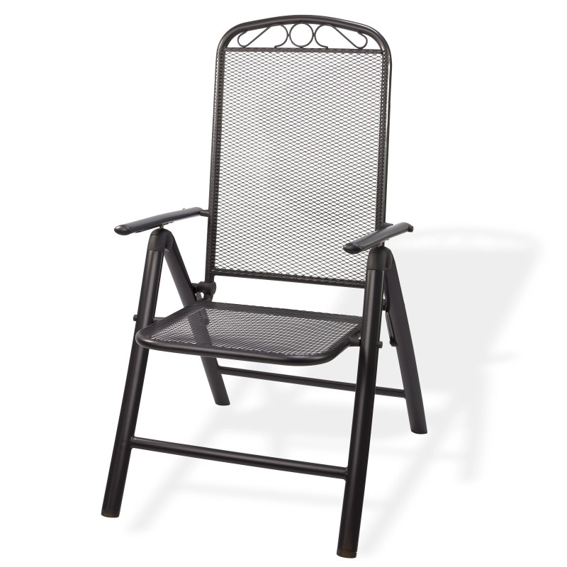 : DEMASklápacia záhradná stolička s opierkami na ruky, vysokým operadlom. Lakovaný kovový korpus. Jednoduchá údržba, vrátane krytov nožičiek zabraňujúcich poškodeniu podlahy.
