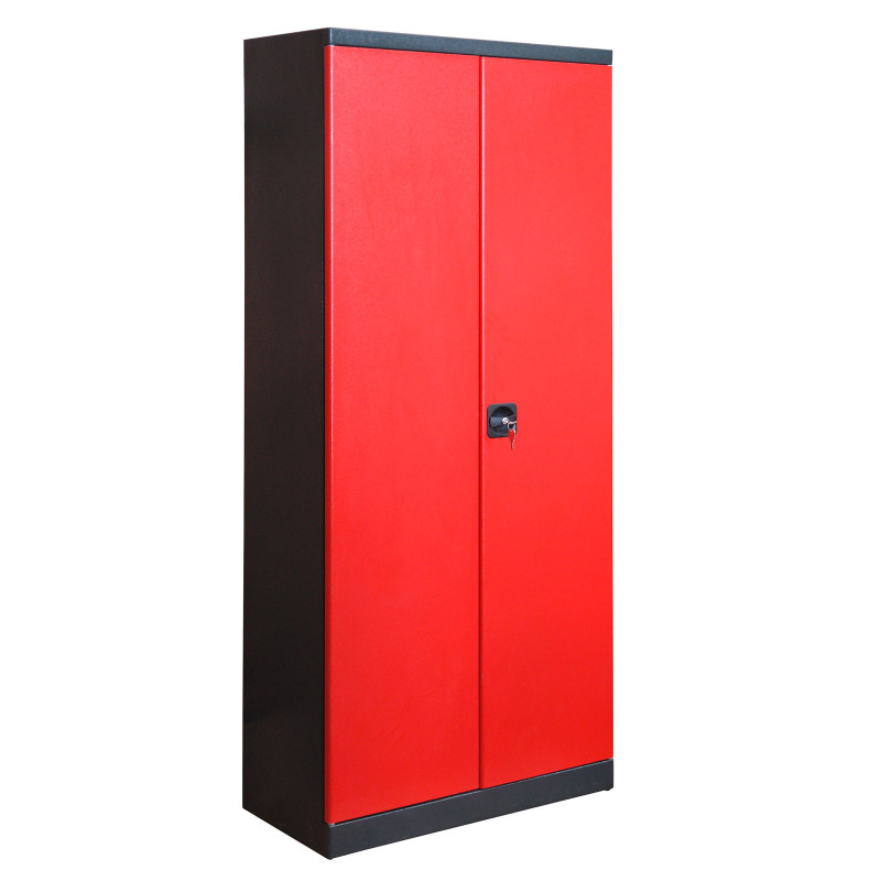 Pevná, kvalitne spracovaná celokovová skriňa s oblými hranami. Celooceľová konštrukcia s povrchovou úpravou práškovaním, kompletne zmontovaná. Cylindrický zámok vrátane dvoch kľúčov. Perforovaná stena na uchytenie rôznych držiakov na náradie. Pevná, kvalitne spracovaná celokovová skriňa s oblými hranami. Celooceľová konštrukcia s povrchovou úpravou práškovaním, kompletne zmontovaná. Cylindrický zámok vrátane dvoch kľúčov. Perforovaná stena na uchytenie rôznych držiakov na náradie. Štyri police (univerzálne prestaviteľné) a 3 plne vysúvateľné zásuvky. So závesmi vo vnútri a uzatváracím mechanizmom.