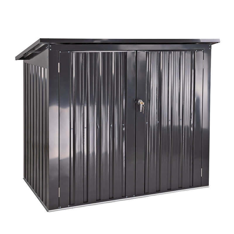 : DEMAKovový box na uloženie 2 bežne dostupných smetných nádob s objemom 240 l (nie sú súčasťou balenia). Vhodný aj na uloženie záhradného náradia, záhradného nábytku a podobne. Opláštenie pevným trapézovým plechom, vystužená strecha a dvierka, uzamykateľné.