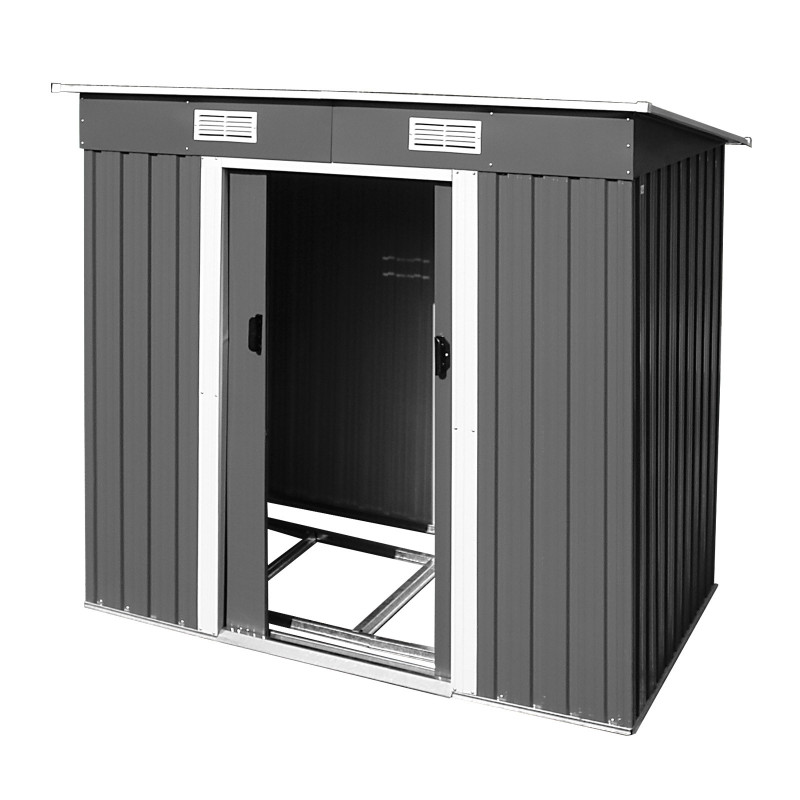 : DEMACelokovový záhradný domček vhodný na uloženie záhradného náradia. Pozinkovaný podstavec (je súčasťou balenia) umožňuje montáž drevenej podlahy (drevená podlaha nie je súčasťou dodania). Pultová strecha - vetracie otvory v hrebeni strechy. Jednoduchá montáž (dodáva sa v demonte).