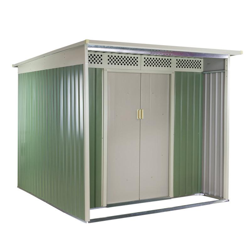 : DEMACelokovový domček na náradie, odolný voči poveternostným vplyvom, s vetracími otvormi, jednoduchá montáž, dodáva sa nezmontovaný.