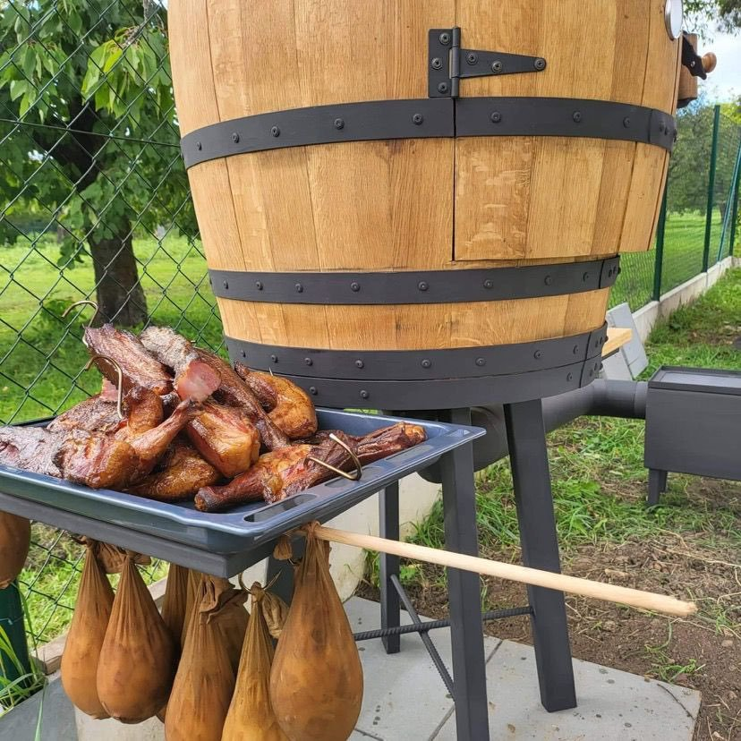 : Kovovýroba BučoviceTáto udiareň je skvelou voľbou pre všetkých milovníkov údeného mäsa. Udiareň pojme až 25 kg mäsa a je vyrobená z kvalitného suda, ktorý dodáva celému zariadeniu štýlový a rustikálny vzhľad. Tento dizajn nielenže vyzerá skvele, ale taktiež poskytuje pohodlnú výšku pre kontrolu a manipuláciu s mäsom.