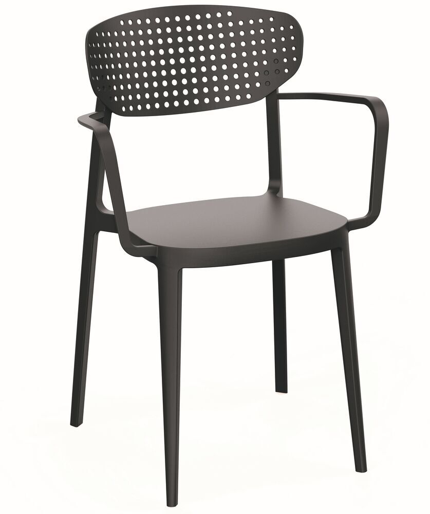 : RojaplastRetro, elegantné a praktické kreslo s pevnou konštrukciou zo 100 % recyklovaného materiálu. Tento materiál je odolný voči UV žiareniu.