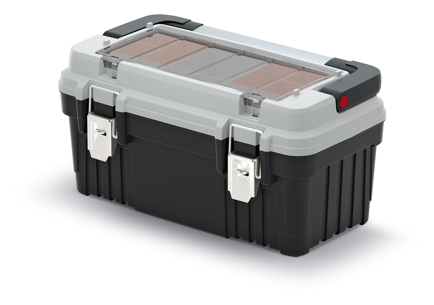 Kufor na náradie s kovovou rukoväťou a zámkami OPTIMA (boxy) 470x256x238 mm - farba: sivá