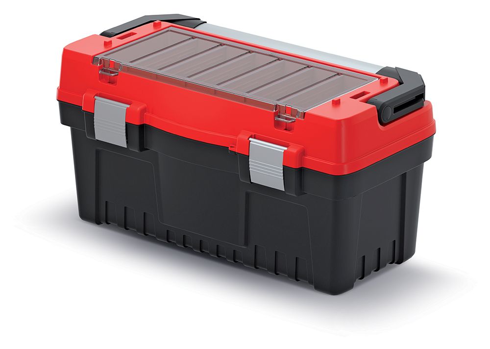 Kufrík na náradie s kovovou rukoväťou a zámkami EVO 548x274x286 mm (prepážky) - farba: červená