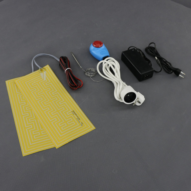 : AgrofortelTF3079, 12V/ 72W kúrenie s termostatom a čidlom do kurníka, psie búdy Elektrický ohrievač ovládaný termostatom s externým čidlom pre vyhrievanie kurníka, psie búdy a ďalších menších priestorov. V tomto komplete zaisťuje vyhrievanie dve vodotesné samolepiace ohybné vykurovacie fólie.