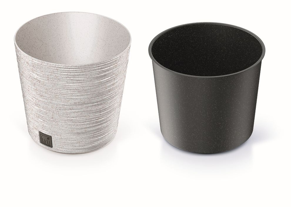 Kvetináč FURU ROUND LOW ECO WOOD s vložkou 25 cm - farba: biela ECO