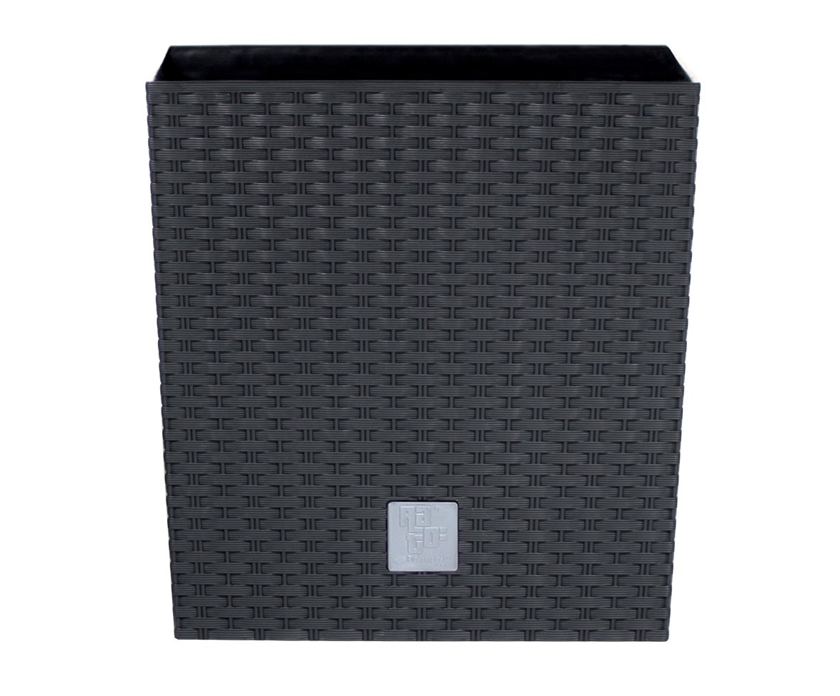 : ProsperplastKvetináč v antracitovej farbe osloví zaujímavým dizajnom imitácie ratanu s objemom 26,6 litra.