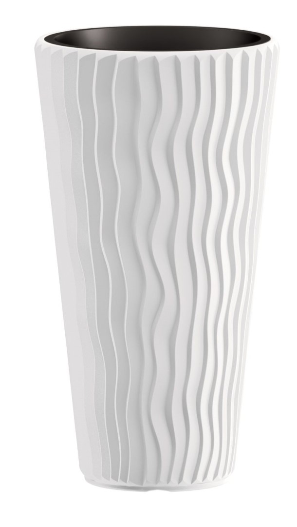 : ProsperplastVysoký kvetináč, objem 45 l, dizajn s textúrou vlniek, vhodný do exteriéru aj interiéru, v balení praktická vložka na sadenie rastlín, rozmery 39 x 70,8 x 39 cm, biela farba.