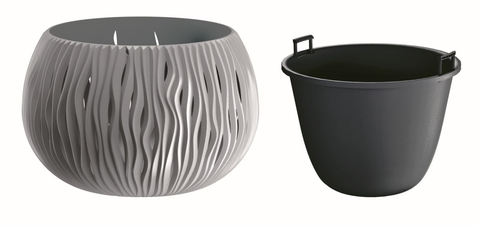 Kvetináč SANDY BOWL s vložkou 37 cm - farba: sivý kameň