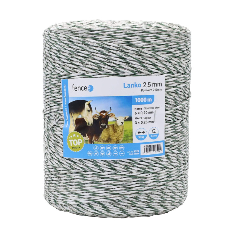 Lanko pre elektrický ohradník, priemer 2,5 mm, zeleno-biele, dĺžka 1000 m