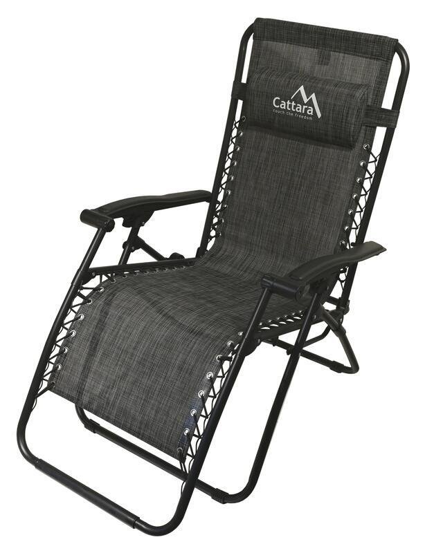 : CattaraSkladacie ležadlo a kreslo 2 v 1, polohovateľné, opierky na ruky, vankúšik s nastaviteľnou výškou, nosnosť až 120 kg. Skladacia konštrukcia pre ľahké skladovanie, antracitová farba. Výška sedenia 37 cm.