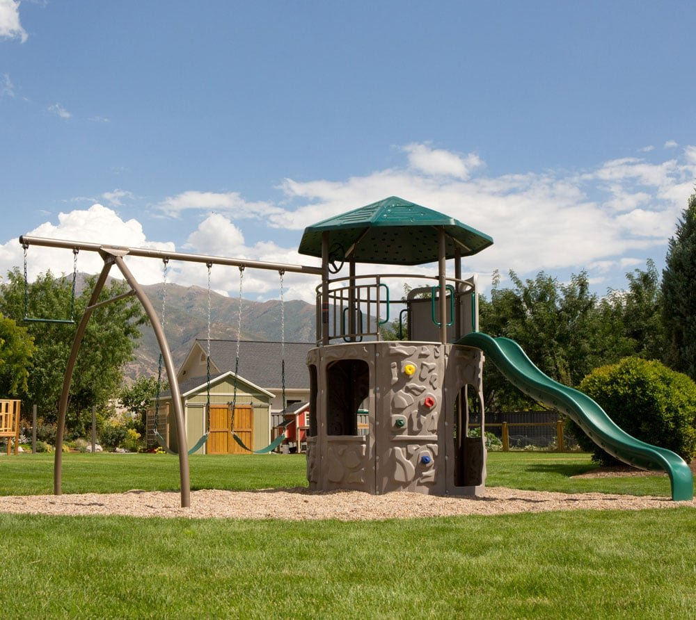 Lifetime detská hracia veža vrátane hojdačky a šmykľavky, hnedo-zelená LP90830