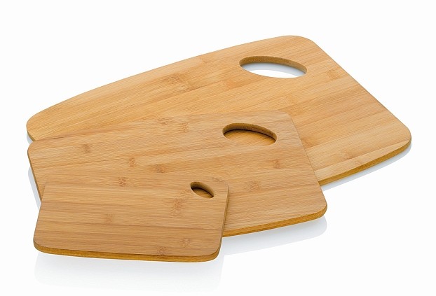 14.05 Sada Kela obsahuje tri krájacie dosky, ktoré sú vyrobené z bambusu – veľmi odolný prírodný materiál s ľahkou údržbou. Doštičky sú opatrené úchytným otvorom.