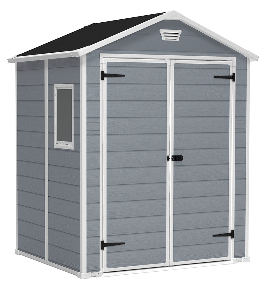 : KeterJednoduchý, bezúdržbový stojan MANOR 6x5 je ideálny pre každú záhradu, kde je potrebné uskladniť náradie a príslušenstvo. Zabudovaný vetrací panel zabezpečuje stály prísun vzduchu do interiéru a zároveň chráni pred škodlivými účinkami vlhkosti.