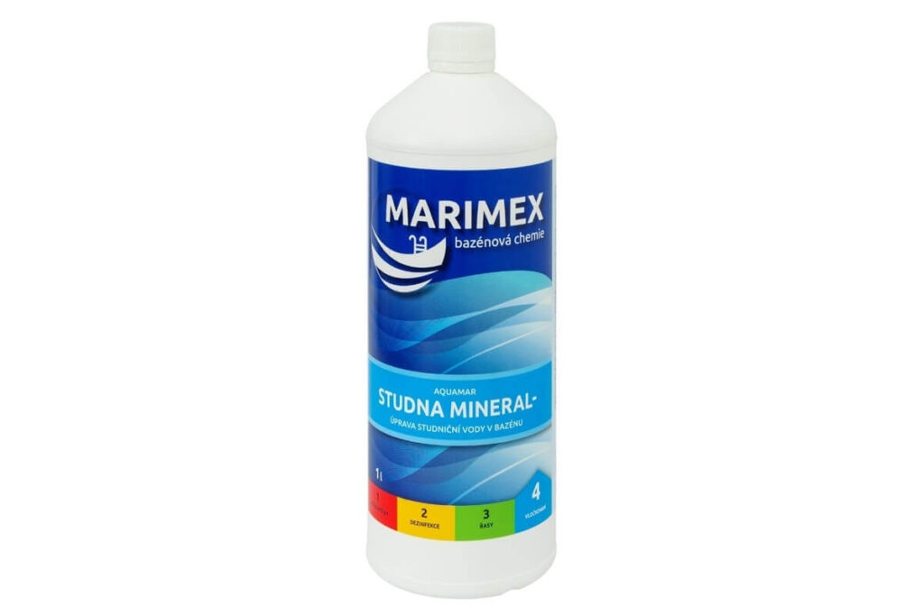 Prípravok Marimex Studňa znižuje tvrdosť vody a zbavuje ju prebytočných minerálov (železo, mangán, meď). Vhodný predovšetkým pre preventívnu aplikáciu pri použití studňovej vody na napustenie bazéna, ktorá je veľmi bohatá na minerály. Tie pri kontakte s chlórom spôsobia hnedý zákal bazénovej vody.