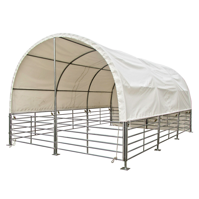 : DEMAMobilný prístrešok ponúka vašim zvieratám suché miesto pri kŕmení a nocovaní. Bez plachty sa dá použiť aj ako bežná ohrada alebo ako krátkodobý skladovací stan. Jednoduchý systém nasúvania a skrutkovania. Všetky rúry pozinkované žiarovým zinkovaním. Jednoduchá montáž a demontáž.