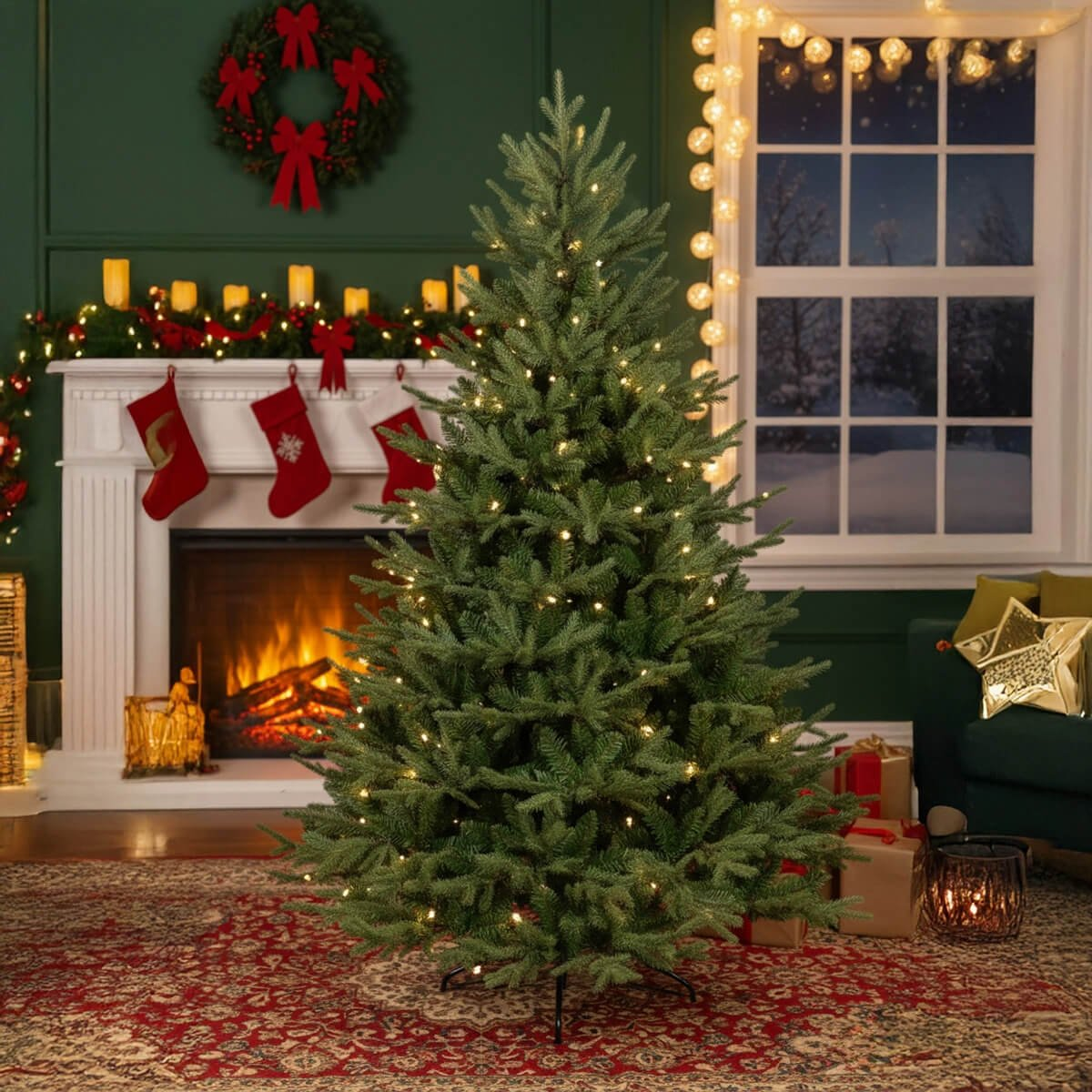 Umelý vianočný stromček HOLLY 210 cm z kolekcie MOODME je elegantná voľba pre každého, kto hľadá mimoriadne realistickú a reprezentatívnu vianočnú dekoráciu. Model inšpirovaný kaukazskou jedľou zaujme svojím prirodzeným tvarom, sýtozelenou farbou a až 3 059 vetvami, ktoré vytvárajú výnimočne hustý a autentický vzhľad. Vďaka kombinácii ihličia PE + PVC pôsobí stromček ako živý – bez starostí s opadanými ihličkami.