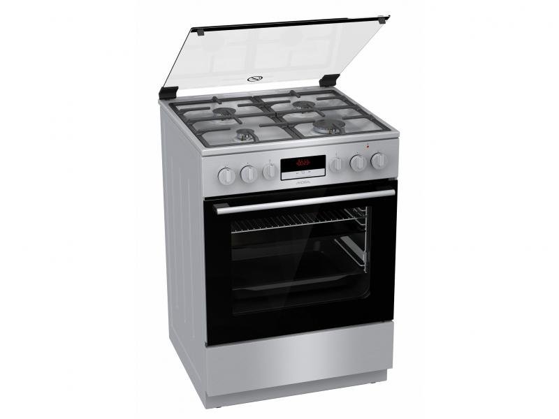 Kombinovaný sporák Mora K 8668 BX6 je voľne stojaci v nerezovom prevedení. Ovládanie horákou je pomocou otočných gombíkov, ktoré sú umiestnené v prednej časti spolu s digitálnym časovým spínačom s hodinami. Integrované zapaľovanie horákov je riešené priamo v samotnom ovládacom gombíku plynu, stačí iba jednou rukou otočiť požadovaným gombíkom automaticky zapáli plynový horák. Horáky sú kryté dvojdielnou liatinovou mriežkou, ktorá zaisťuje bezpečný posun riadu vo všetkých smeroch. Sporák je vybavený aj praktickým výklopným úložným priestorom v spodnej časti, kde si môžete uskladňovať plechy alebo iný kuchynský riad.