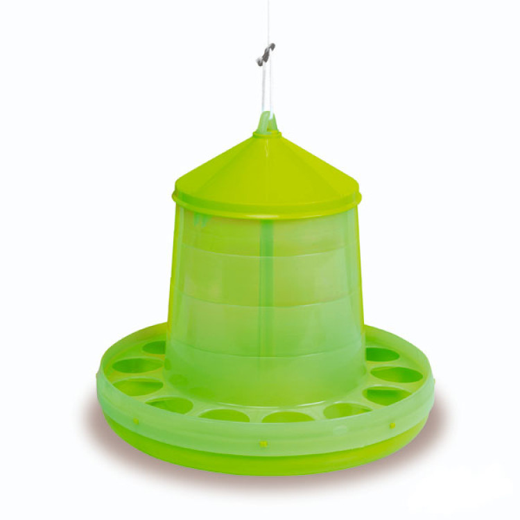 : AgrofortelNásypné krmítko na zavesenie - 12 kg - GAUN 11175 Kŕmidlo s objemom 12 kilogramov od kvalitného výrobcu GAUN zo Španielska. Kŕmidlo je možné postaviť na zem alebo pomocou špagátu priviazať za ucho a vytvoriť tak závesné krmítko pre sliepky.