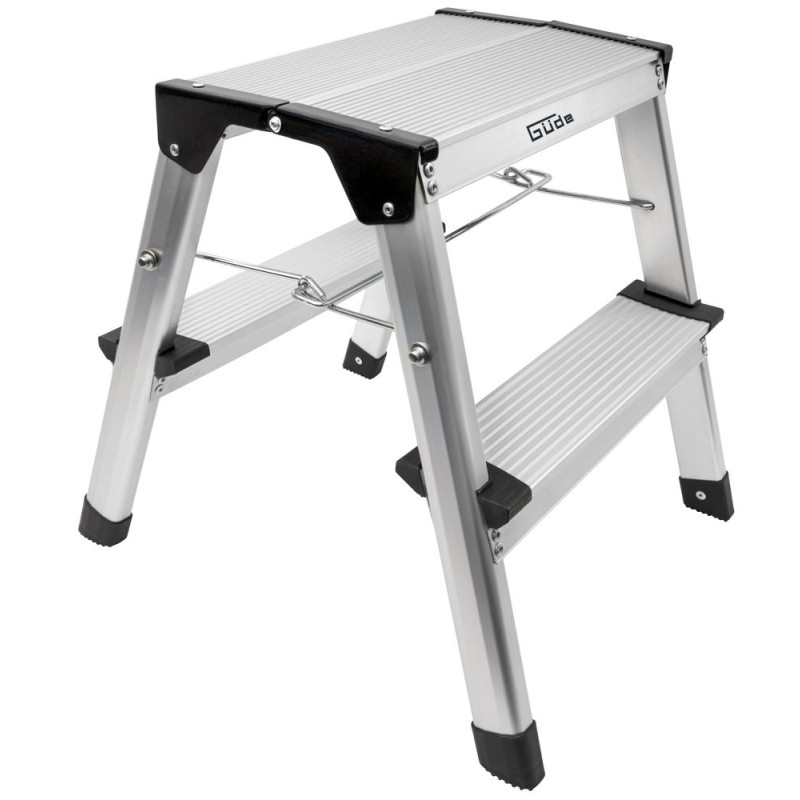 : GüdeObojstranné hliníkové schodíky so sklopnými nohami na všestranné použitie. Ľahké, hliníkové schodíky sú ideálnym pomocníkom pri montáži, renovácii alebo dekorovaní, a to na stavbe, ako aj na každodenné práce v domácnosti. Úspora miesta vďaka jednoduchému skladaciemu mechanizmu.