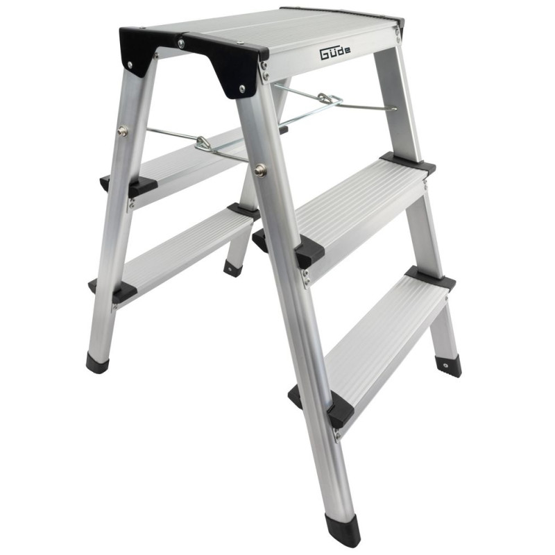 : GüdeObojstranné hliníkové schodíky so sklopnými nohami na všestranné použitie. Ľahké, hliníkové schodíky sú ideálnym pomocníkom pri montáži, renovácii alebo dekorovaní, a to na stavbe, ako aj na každodenné práce v domácnosti. Úspora miesta vďaka jednoduchému skladaciemu mechanizmu.