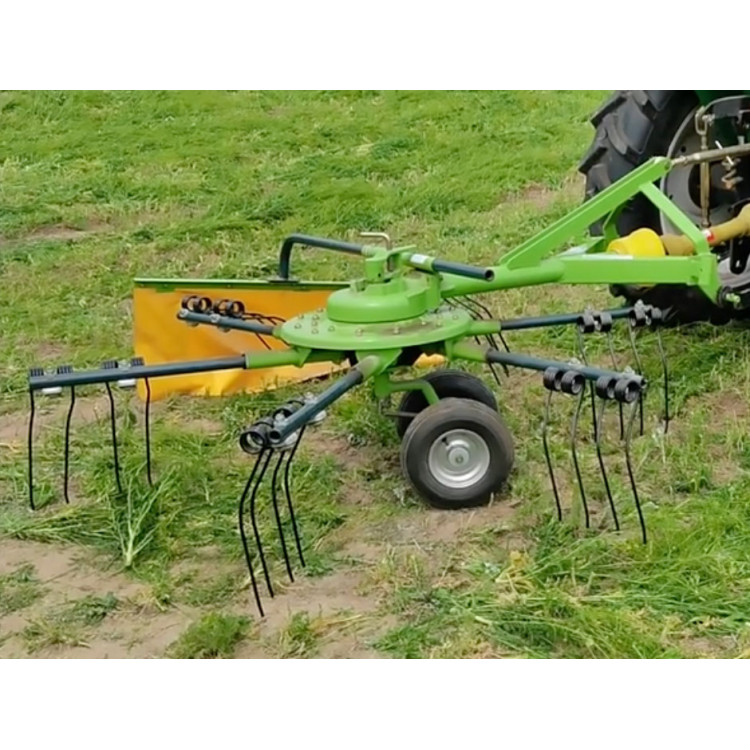 - Obracanie sena: Obracačka môže rozprestierať a prevracať trávu na rovnomerné sušenie. Možnosť prispôsobenia obracania rôznym plodinám a podmienkam zmenou otáčok kardanu alebo polohy hrotov . Poloha hrotov je ovládaná vačkou.