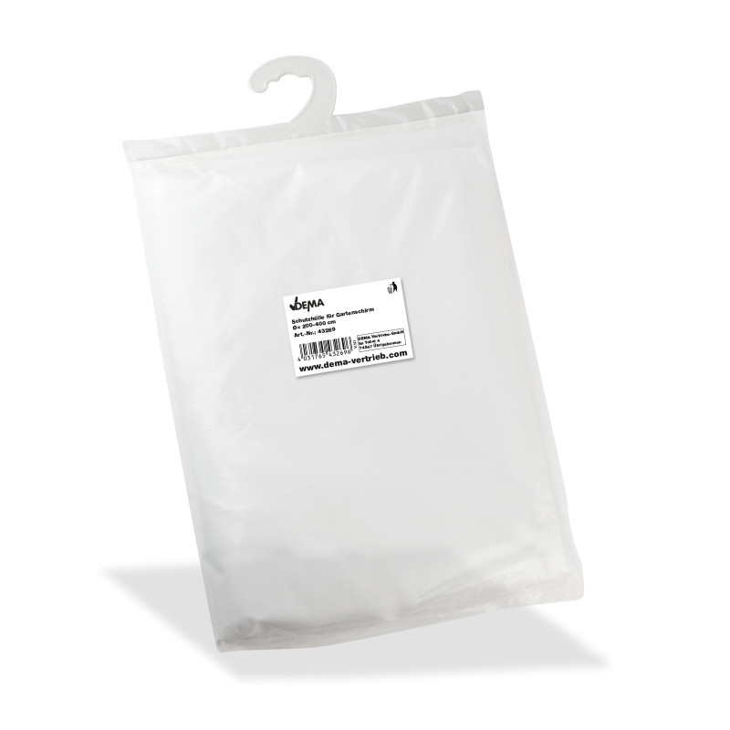 : DEMATransparentný ochranný obal na záhradné slnečníky s priemerom 250 až 450 cm, chráni zavretý slnečník pred listami, vtáčím trusom, peľom, dažďom a podobne. Umývateľný, vodotesný, so všitým zipsom, s kordovou šnúrou.