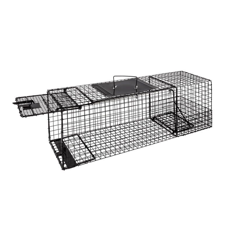 : DEMAOdchytová pasca na bezpečné a šetrné chytanie líšok, túlavých mačiek, mývalov, kún a iných zvierat. V úteku uviaznutého zvieraťa zabraňujú ťažké kovové padacie dvierka vpravo a vľavo s automatickým uzamknutím po spustení.