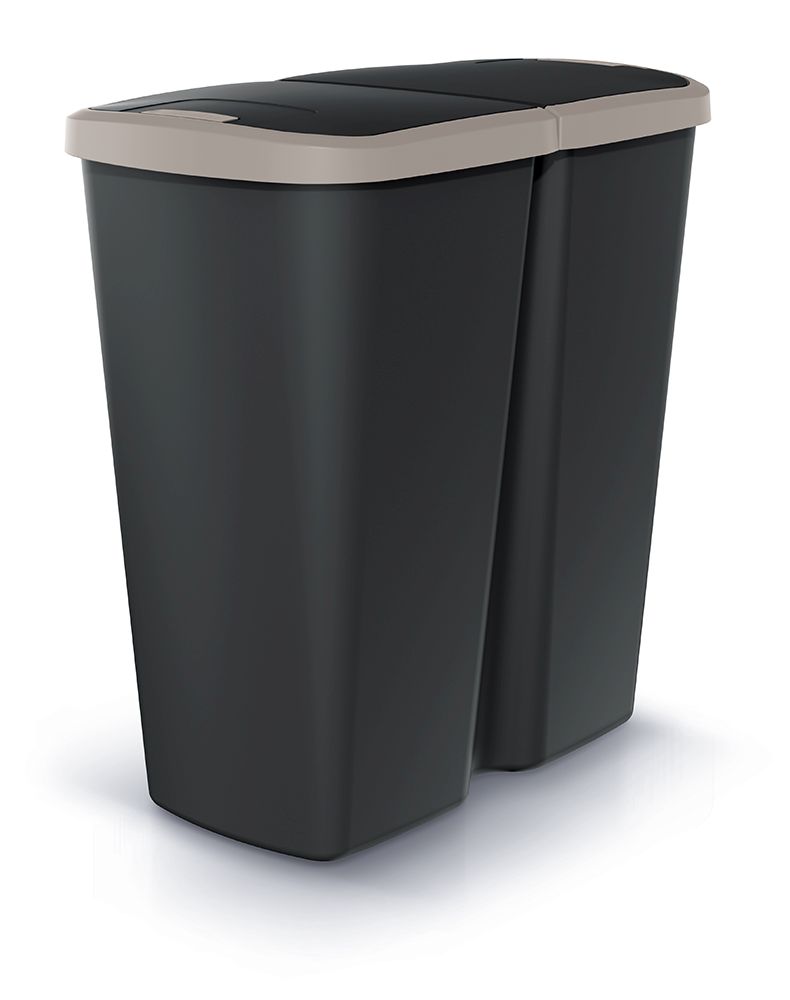 Odpadkový kôš COMPACTA Q DUO - objem: 45 l, farba: čierna so svetlohnedým vekom